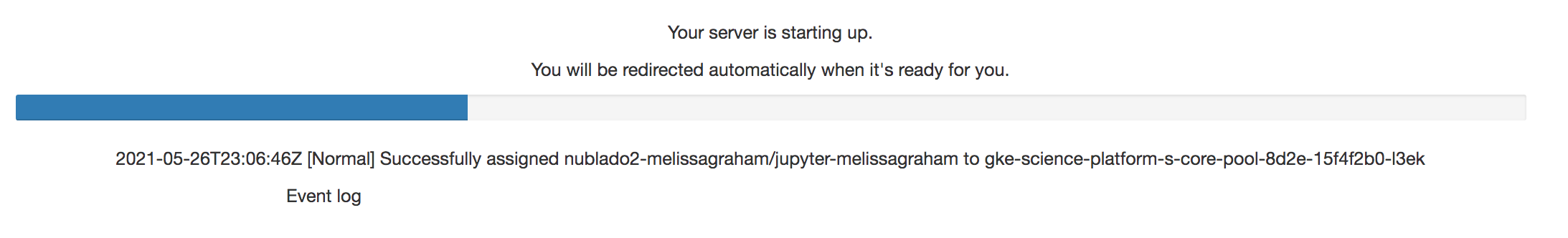 Pressing the orange “Start” button to start the server returns this page with a blue progress bar: